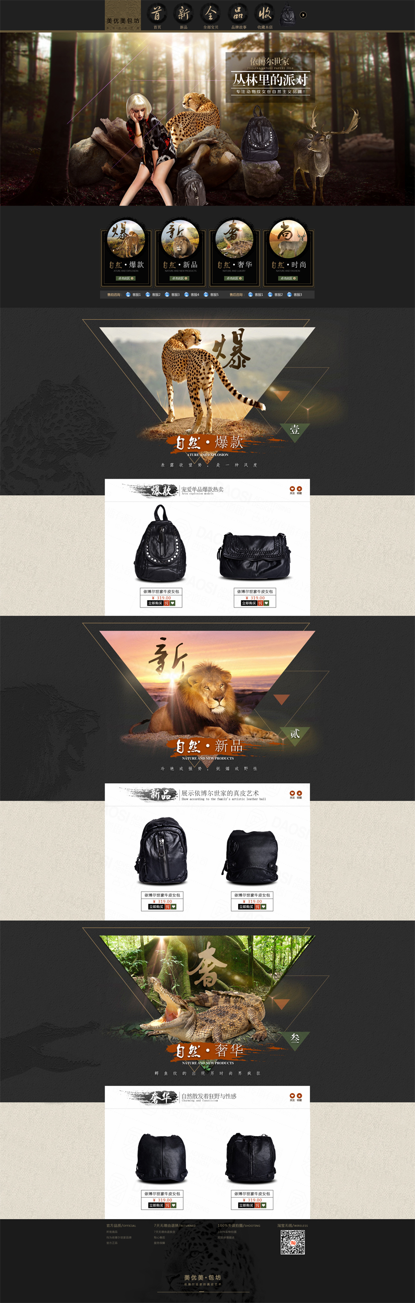 此為高端時尚男包首頁設(shè)計展示作品!因此店設(shè)計作品較多,網(wǎng)站案例上傳空間有限,所以只上傳了部分案例,如需了解更多請聯(lián)系客服!